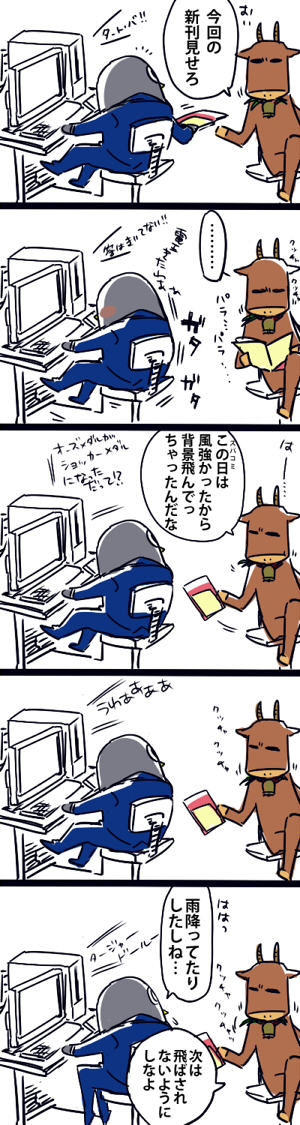 (ペンギン=アライ、牛=妹)